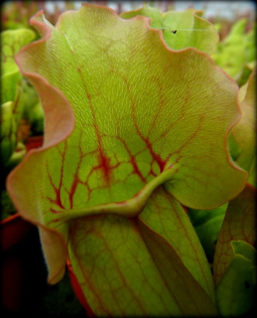 Ciekawa odmiana kapturnicy purpurowej, rosnąca w naturze bardziej południowo od ssp purpurea, tworząca bardzo szerokie, niezbyt wysokie kielichy, wybarwiające się ładnie na różowo-czerwonawy kolor. Gatunek ten nie wytwarza szczególnie dużo enzymów trawiennych, często w ich kielichach znajduje się woda pochodząca z opadów. Gatunek ten w naturze często rośnie pośród traw oraz innej przerastającej je roślinności, stąd też nie potrzebuje do swojego rozwoju aż tyle światła co inne gatunki kapturnic.